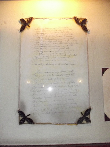 This framed plaque is where Robert Burns wrote on the wall of the Kenmore Inn in 1787